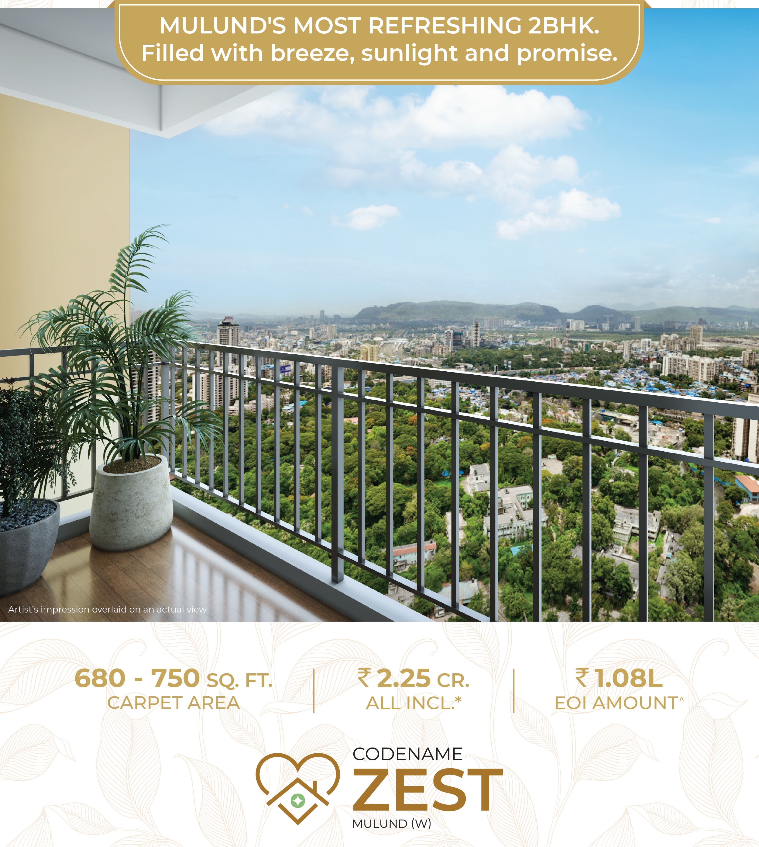Shapoorji Project Zest in Mulund offering 2/3 BHK Apartment in Mumbai. Codename Zest sits at the vibrant heart of Mulund, perfectly positioned for unmatched connectivity. Enjoy seamless travel across Mumbai, Thane and Navi Mumbai with easy access to railways, highways and bridges. Let every journey you embark on be infused with comfort and convenience. For quick retreats from the daily hustle, lush green spaces lie moments away. Embrace nature’s charm at your leisure. Find top malls, diverse shopping, trusted healthcare and dining delights at your doorstep. It’s where convenience meets comfort, where every moment is curated to indulge your desires..